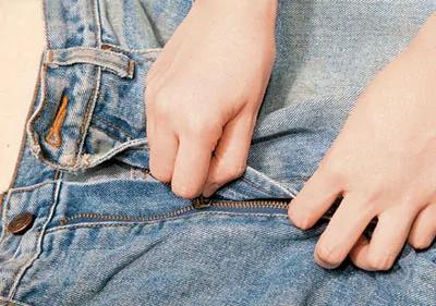 在洗牛仔褲之前,最好先將拉鏈鎖好。以免牛仔褲變形,變形的牛仔褲不好看也不好穿。